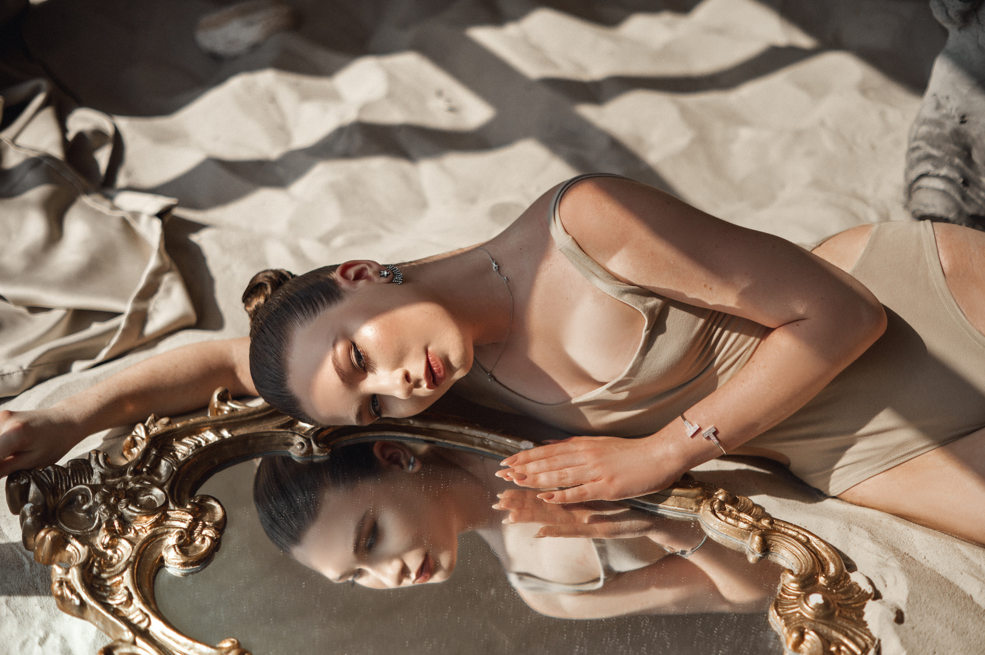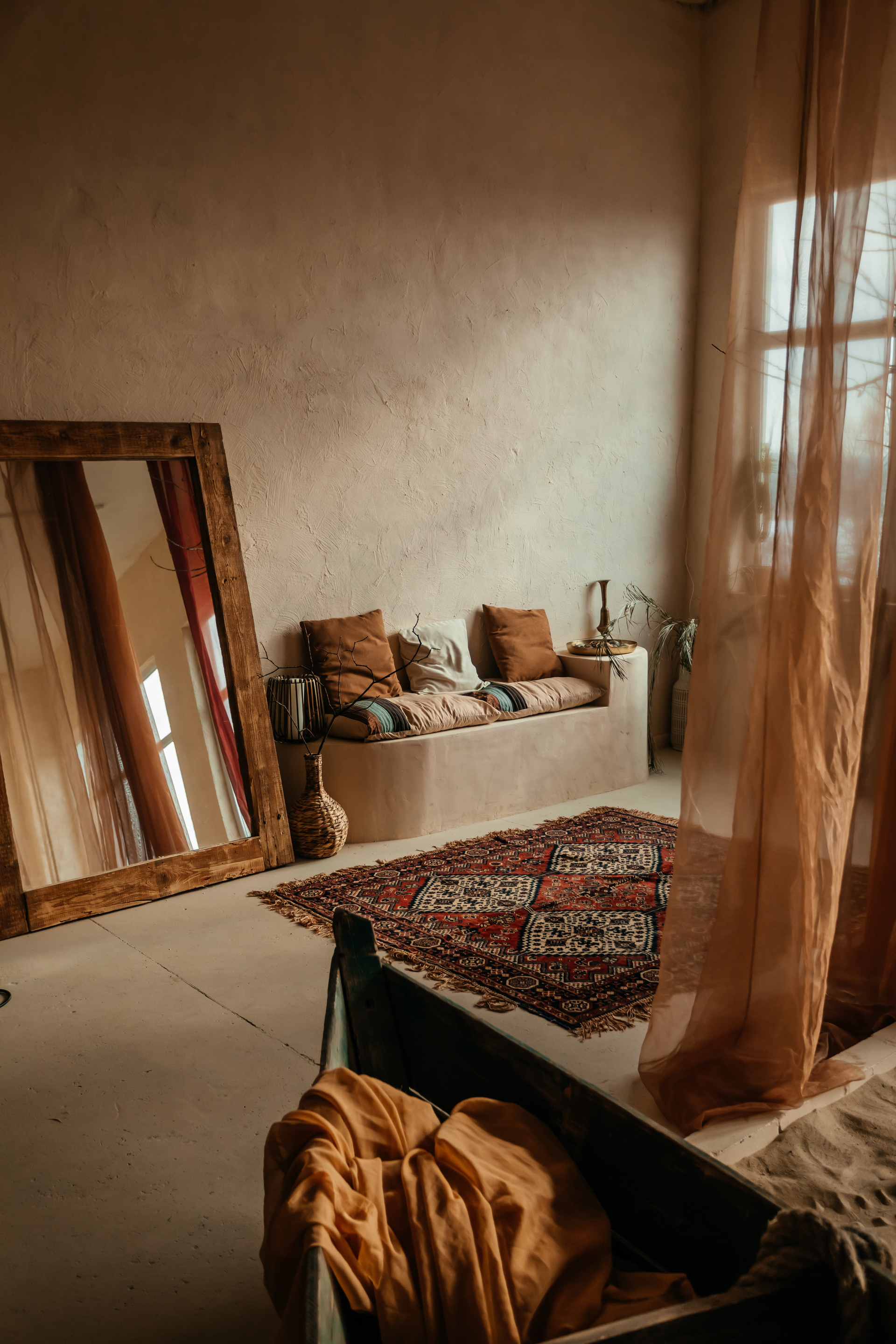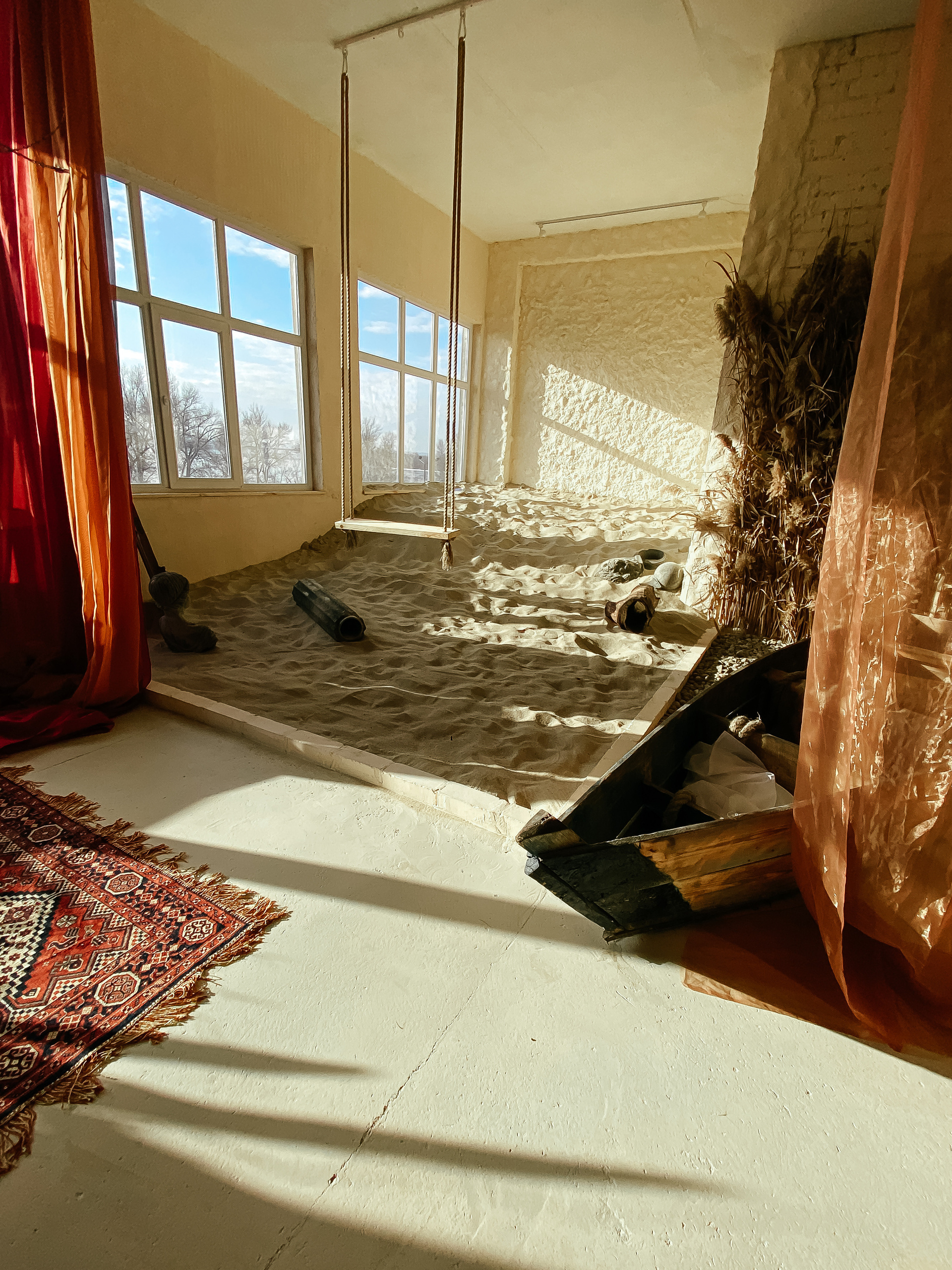 Протягом усього дня сонце чудово освітлює пісок, вінтажні двері, крісло та човен, надаючи особливого настрою цій локації. Крім того, є гойдалка, яка ідеально підходить для будь-якої фотосесії. В залі доступно три локації: пісок з човном, гойдалка, стілець і кактус.