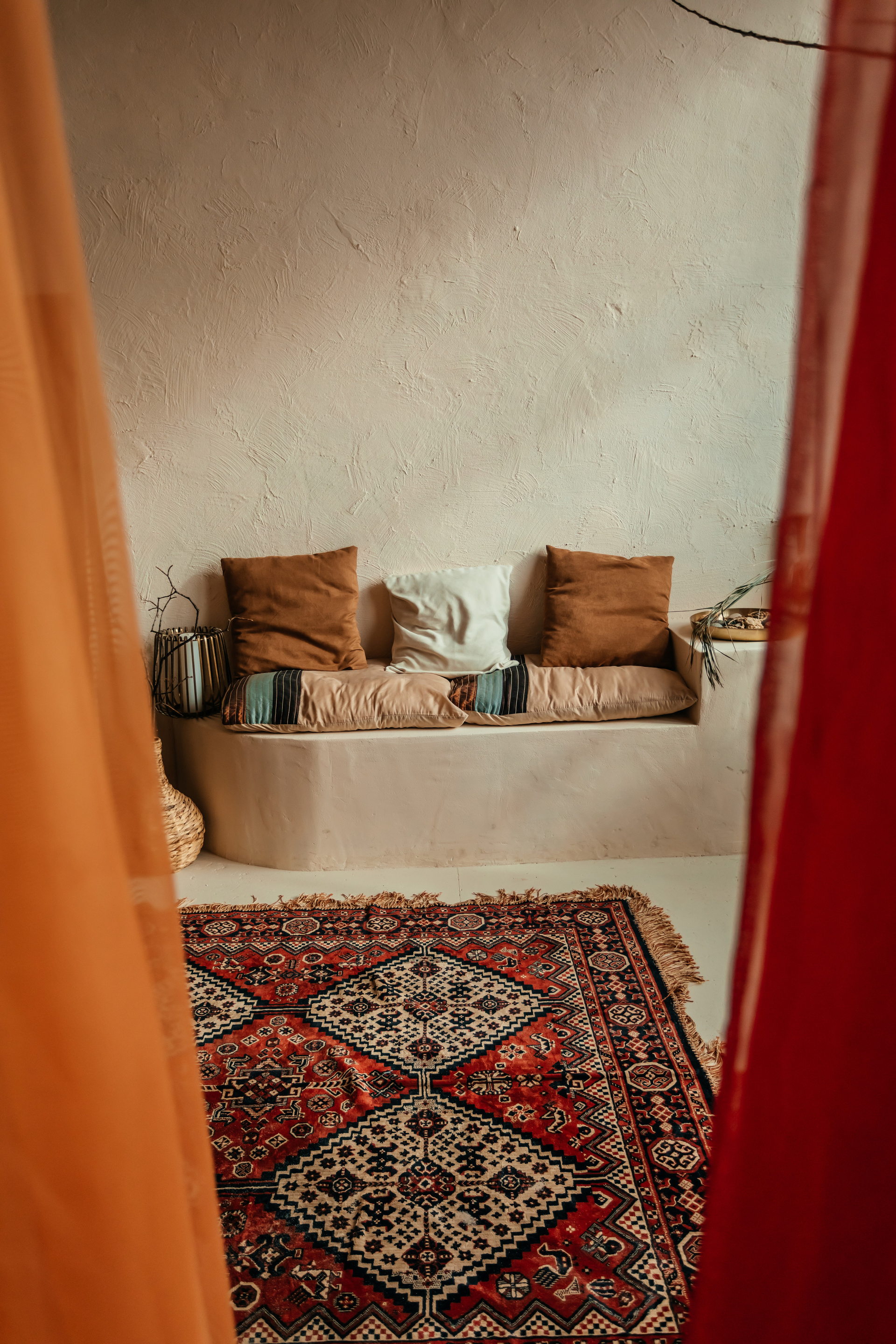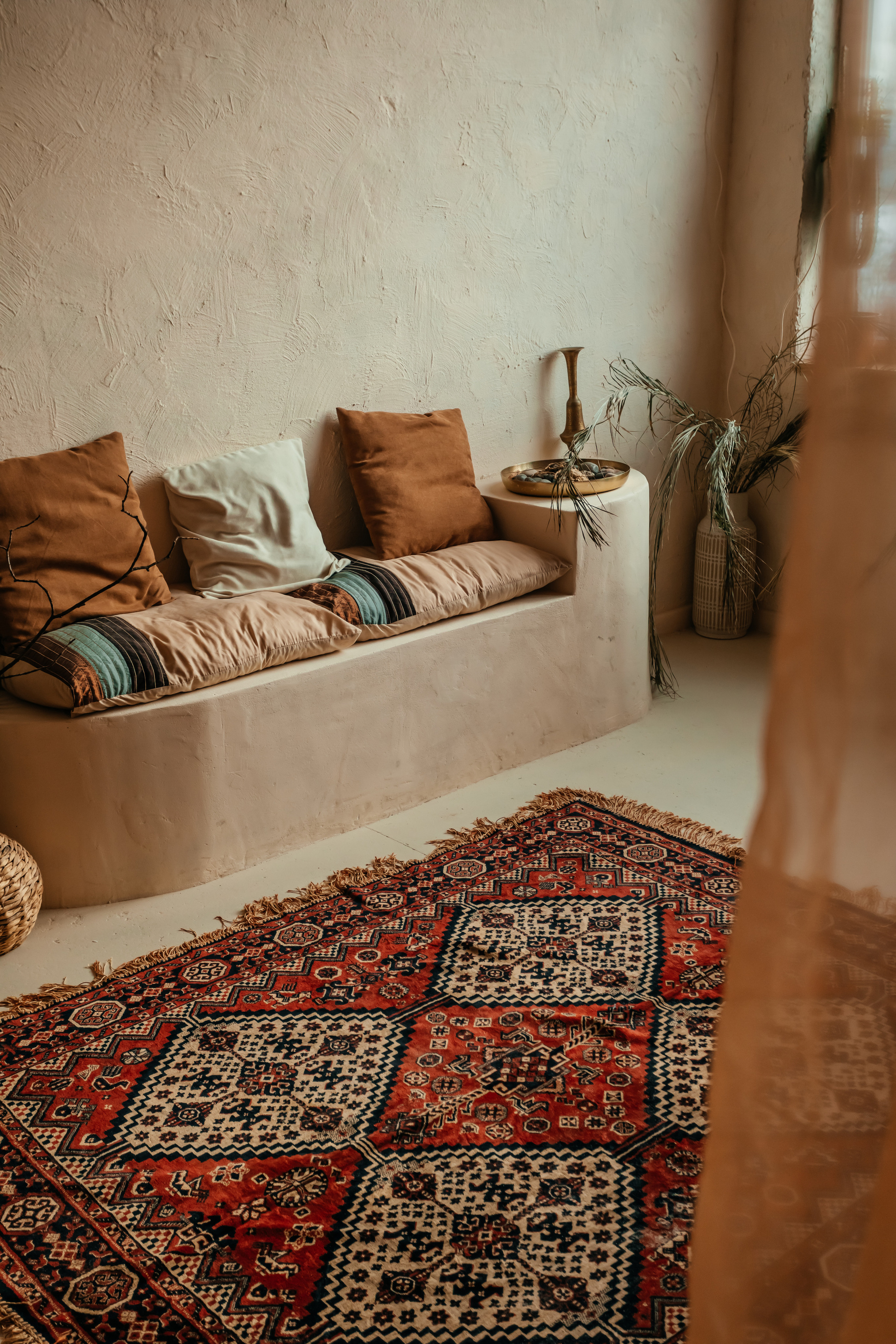 Також є стіна з очерету та Східна лавка з подушками. У залі розташоване велике дзеркало.